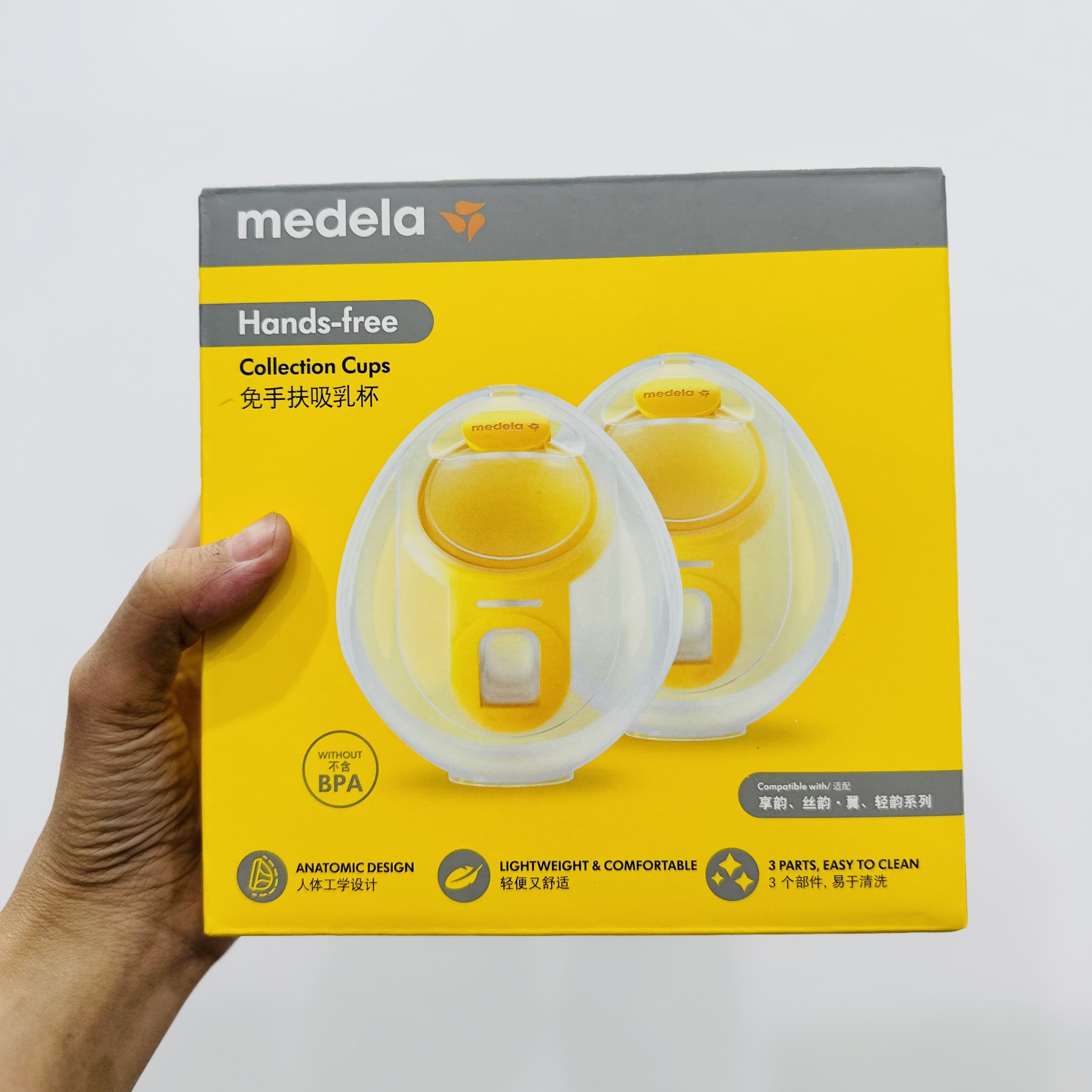 Cúp hút sữa Medela gọn nhẹ, giúp mẹ dễ dàng di chuyển khi hút sữa.